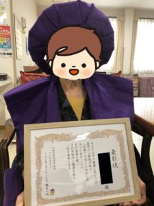 日頃より健康に気を使い、リハビリを熱心に取り組まれている皆様を表彰し、今回の長寿表彰では「百寿」の方がいらっしゃいました。